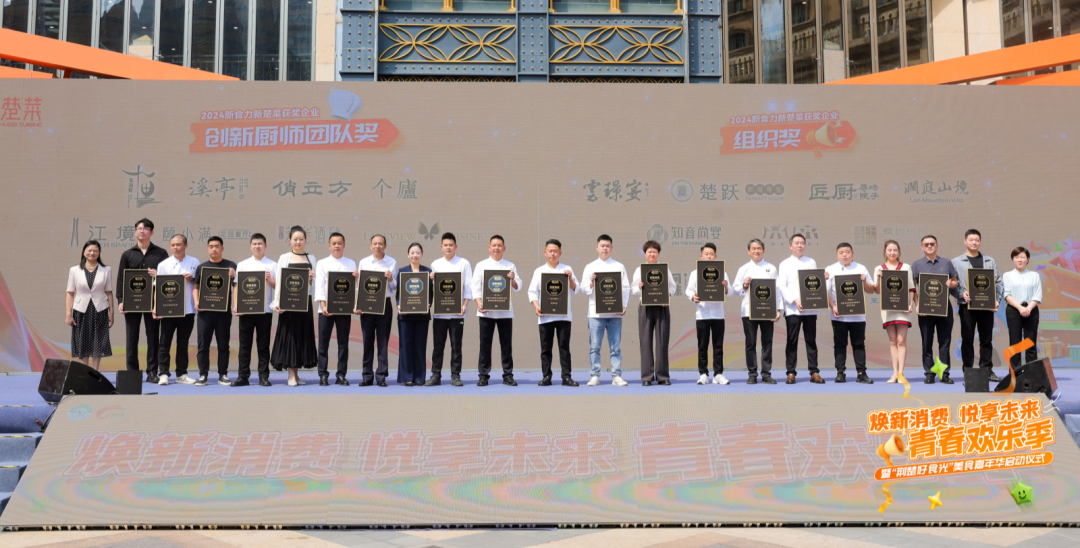 启动仪式上发布了楚菜形象IP,这是全国首个官方菜系IP;还进行了2024新食力新楚菜获奖企业颁奖,十里·东湖宴、溪亭等10家餐厅获评创新厨师团队,雲璟宴、楚跃·赛江南等10家餐厅获评组织奖。