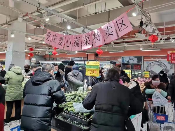 长江日报-长江网记者从中百仓储生鲜物流部门了解到,截至27日下午,重庆驰援武汉的“爱心菜”已全部发往各个门店,由于这些蔬菜售价较低,售卖收入将用于捐赠,因此蔬菜会采用专门的条码来收银,有生菜、上海青、黄瓜、四季豆、土豆、花菜、南瓜等品种,市民选购时注意辨别爱心菜和普通蔬菜。生鲜区是超市内顾客最多的地方,除了“爱心菜”专区,普通蔬菜区域的顾客也很多。