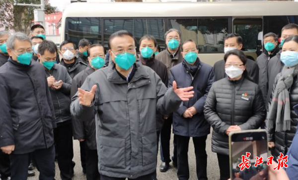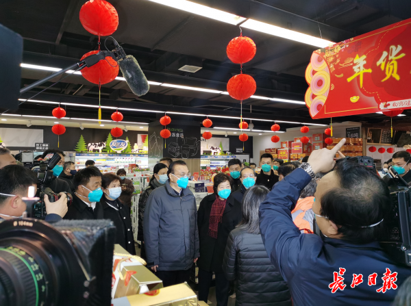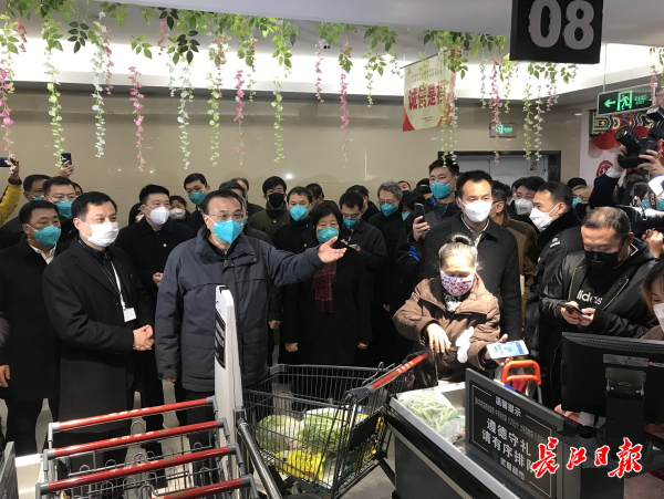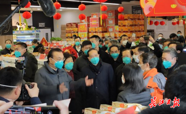 1月27日中午,李克强总理到武商量贩(武泰闸店)考察物资供应情况。