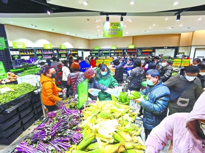 29日,汉口一小区中百超市、绿佳鲜生等市场内新鲜蔬菜、水果供应充足,价格平稳,居民正在选购 长江日报记者刘斌 摄 |