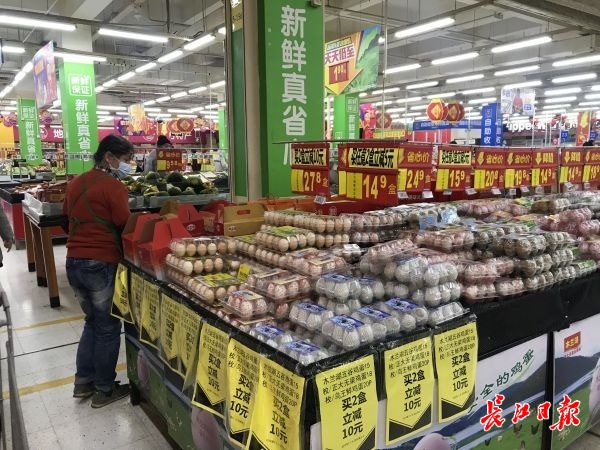 长江日报-长江网1月26日讯(记者孙珺) 胡萝卜2.88元一斤,莲藕4.98元一斤,白菜薹3.9元一斤……26日上午,沃尔玛江汉路店,市民采购有序,蔬果一旦缺货,补货团队立即跟上。