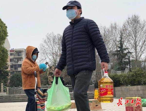 发布日期:2020-03-07 09:57:00 文章来源:长江网长江网3月6日讯3月6日,东西湖区常青花园三社区来自童梦幼儿园等单位数十名志愿者,坚守社区疫情防控各个岗位,在无接触投送点,志愿者搬运蔬菜、水果、分发物资,帮助困难家庭送菜上门,维护社区秩序,居民间隔排队有序领取生活物资。疫情期间,社区居民购物采用多种渠道,政府补贴十元菜、农投集团、多点等网上团购,“菜篮子”品类丰富。