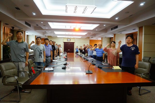 7月1日下午,局机关6号楼3楼会议室党旗飘扬,誓言铿锵。局机关第一支部全体党员在支部书记的带领下,面向党旗,举起右手,重温入党誓词,隆重开展庆祝建党95周年主题党日活动。