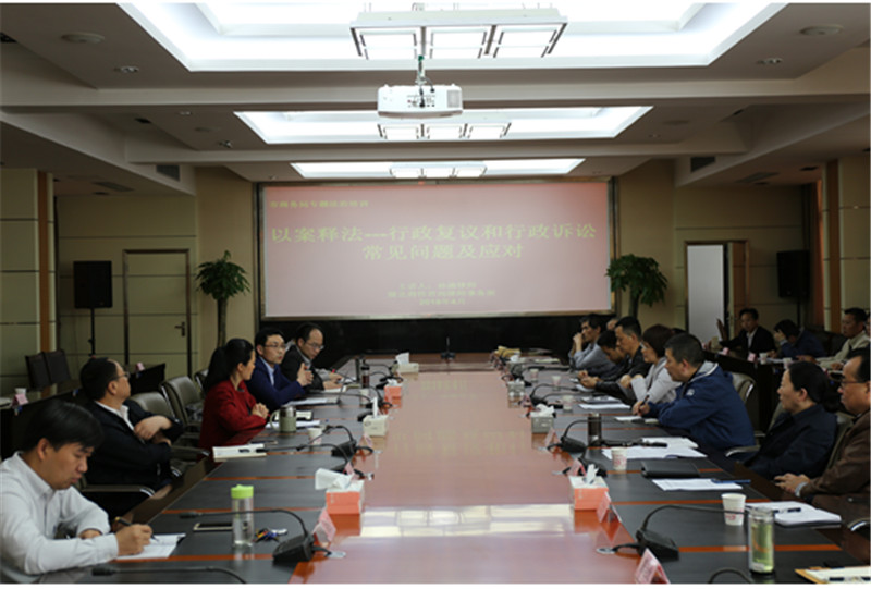 发布日期:2018-04-20 10:04:24 文章来源:商务局 为深入贯彻党的十九大精神,落实全面依法治国和法治政府建设的目标要求,提升领导干部及执法人员法治思维的能力和水平,4月16日,市商务局邀请局常年法律顾问湖北得伟君尚律师事务所律师孙涌开展“以案释法——行政复议和行政诉讼常见问题及应对”专题讲座,市商务局党组成员、副局长蔡东霞主持讲座。