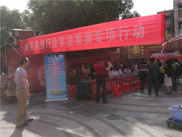 6月15日上午9时,在江岸区吉庆街中心广场,市商务局联合省商务厅、江岸区商务局、省典当行业协会、市典当行业协会集中开展了典当行防范和处置非法集资宣传教育活动。省商务厅、市金融工作局(市处非办)、大智街办事处及所属社区负责人,市内典当企业负责人及社区居民共100余人参加了本次宣传活动。通过现场解答市民咨询,发放2000余份宣传折页等活动形式,督促典当企业提高风险防范意识,排查消除非法集资隐患,提升广大市民的自我保护意识。