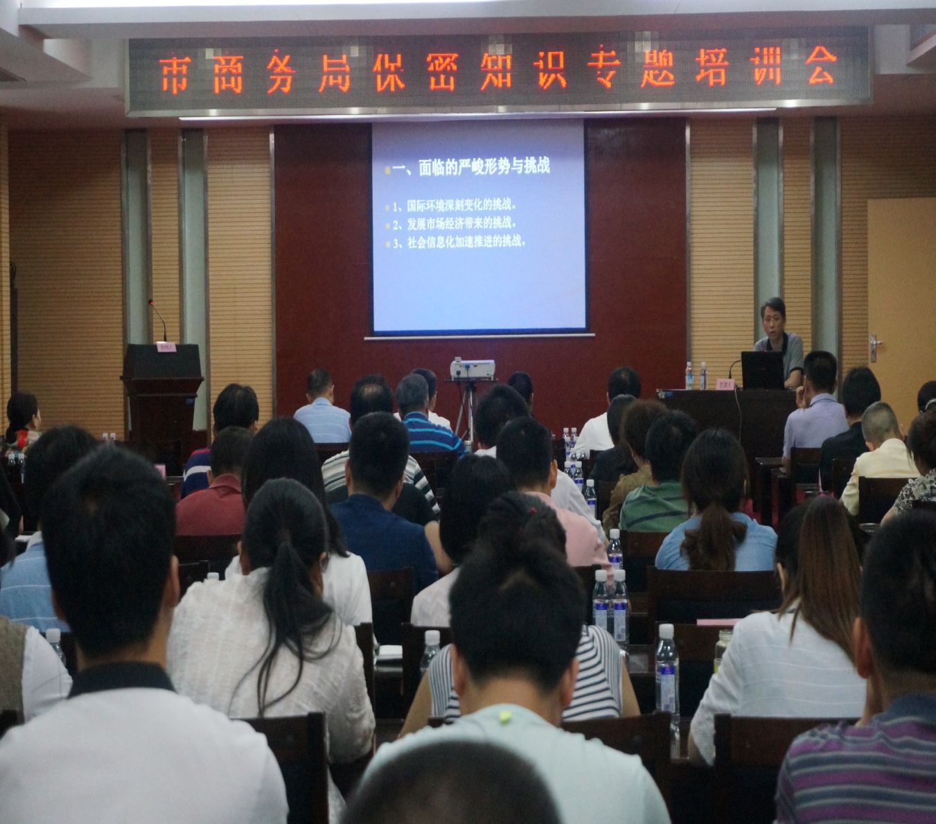 为进一步提升局系统干部、职工及涉密人员保密意识,加强保密管理,增强网络窃密泄密发现处置能力,2019年6月21日下午,市商务局邀请市委机要保密和档案局监督检查处俞峰处长,为局全体干部、职工开展保密知识专题培训,在家局领导、全体工作人员及局属二级单位处级干部共135名同志参加了培训。