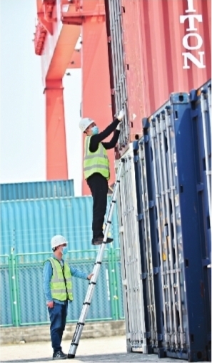 4月27日上午,中铁联集武汉中心站海关监管区,工作人员正在检查中欧班列集装箱箱况、核对箱号、封签 长江日报记者郭良朔 通讯员王遥遥 摄 |