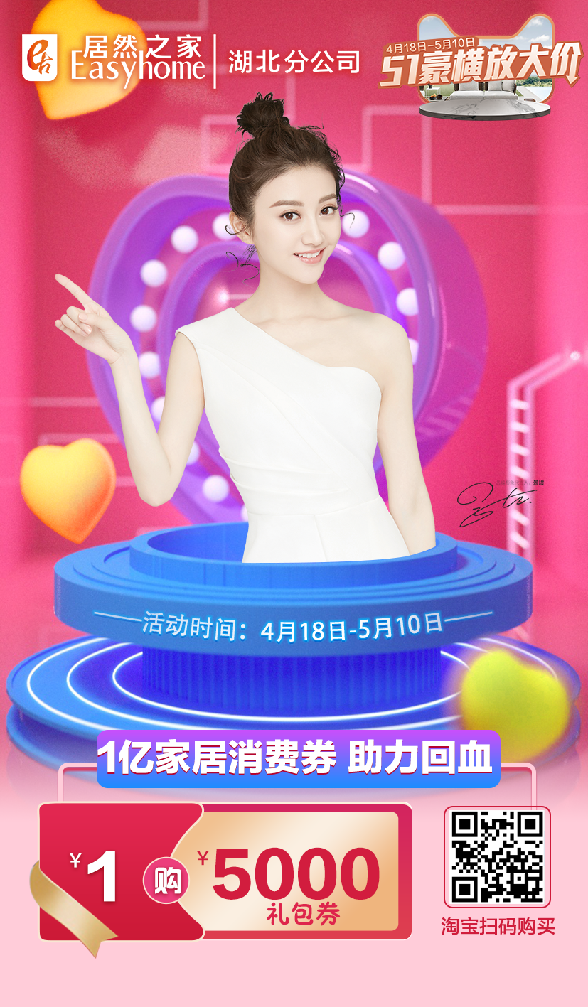 2、活动内容:五一大促期间先投放1亿元消费券,4月18日至5月10日,登陆居然之家官方旗舰店或武汉居然之家各门店,均可1元兑换5000元家居消费券。