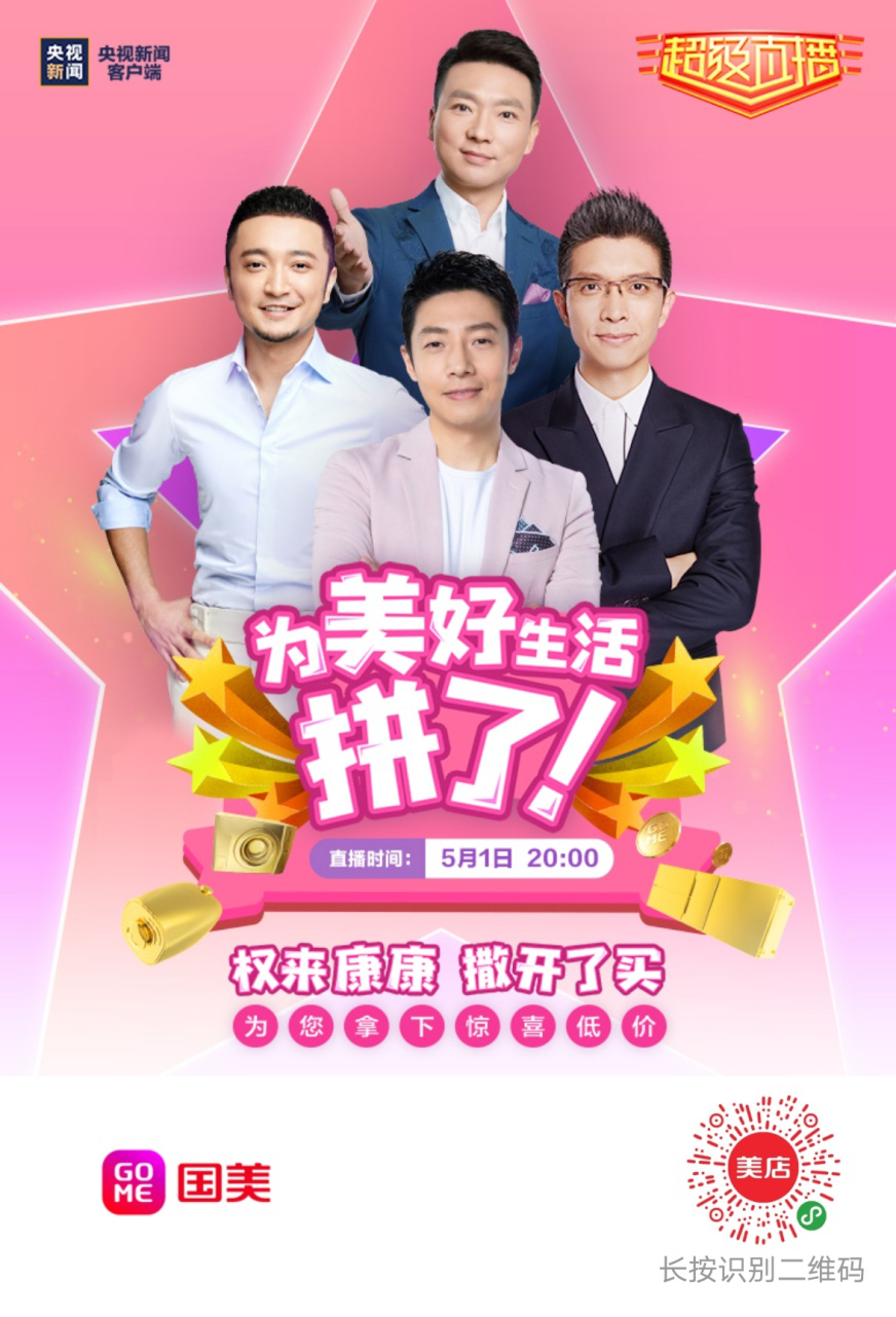 2、活动内容:5月1日-5月5日,国美五一大促,巅峰让利。识别图中二维码即可锁定5.1晚8点国美直播!