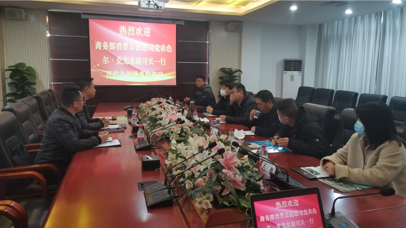 克衣色尔·克尤木副司长认真听取了企业汇报、考察了九州通东西湖物流中心和全国物流调度指挥中心,并与九州通集团相关负责人进行了深入的沟通交流。克衣色尔·克尤木副司长对九州通近几年的快速发展给予了高度的评价、对九州通在抗疫期间为武汉和湖北、乃至全国医疗物资的所开展的保供工作给予了充分肯定和赞赏,也了解了企业的经营情况、下一步发展规划、存在的困难和需求。同时也希望九州通能够继续立足大健康产业、加强电商和物流技术研究与探索,保持强劲的发展势头,为中国医药行业发展作贡献!克衣色尔·克尤木副司长要求市区商务部门进一步加强调研,支持企业做大做强。