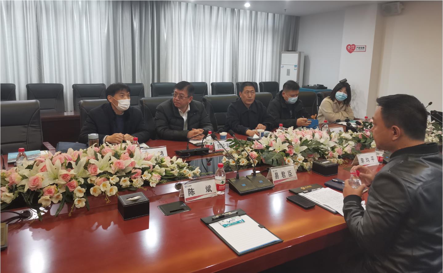 会议室听取汇报和交流