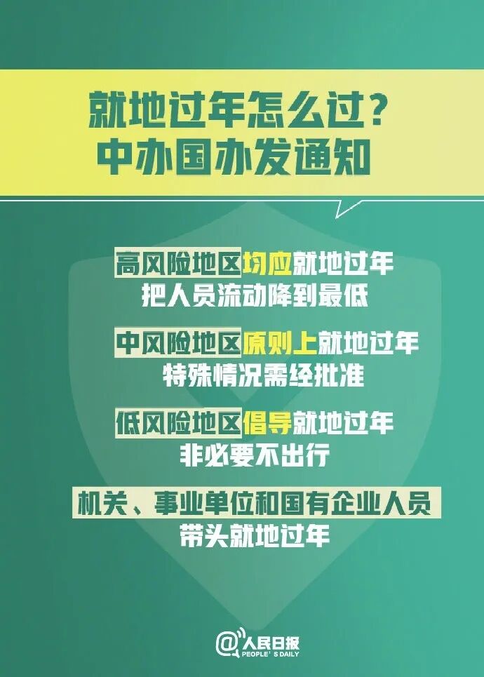 疫情高风险地区群众均应就地过年,把人员流动降到最低,防止因人员流动导致疫情传播扩散;