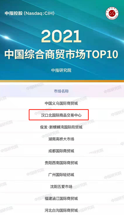 汉口北跻身全国第二!2021全国综合商贸市场排名出炉