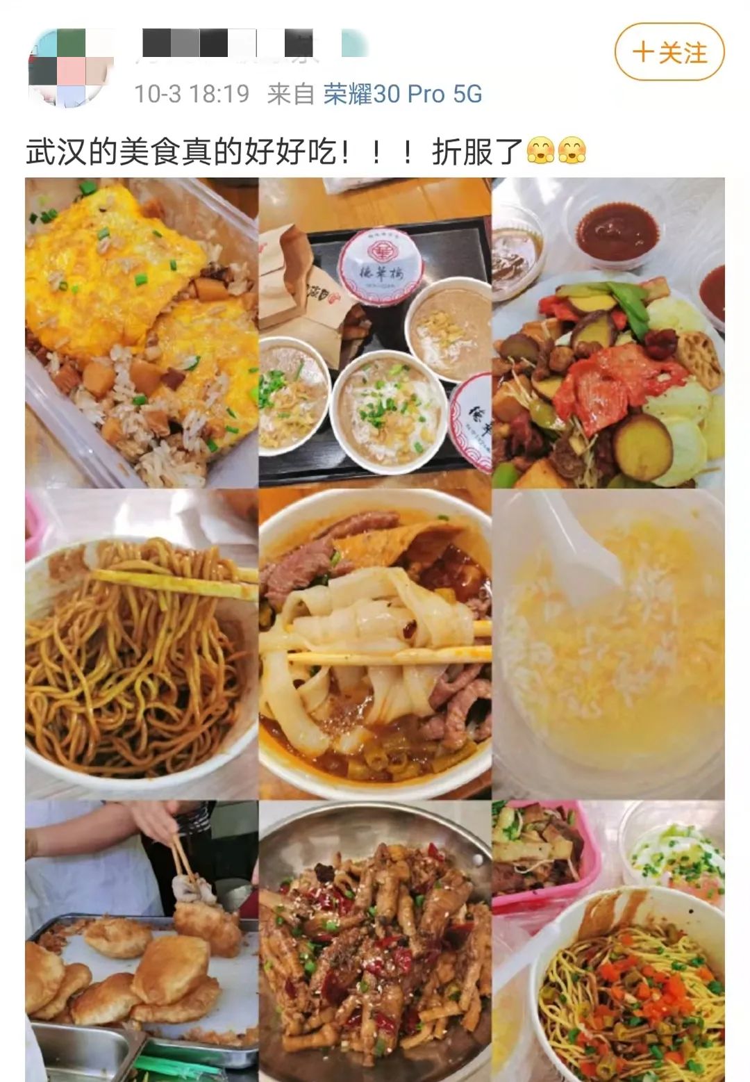 “一大早上我已经排了豆皮、烧麦、热干面、糊汤粉的队了,武汉人真是爱过早!” “今天早上6点起来去吃严氏烧麦,没想到已经排长队了,排了40分钟才吃到一口新鲜出炉的豆皮。” “深夜的小民大排档,早上7点的粮道街油饼包烧麦,武汉美食真的太好吃了,还想再吃一次。”10月3日