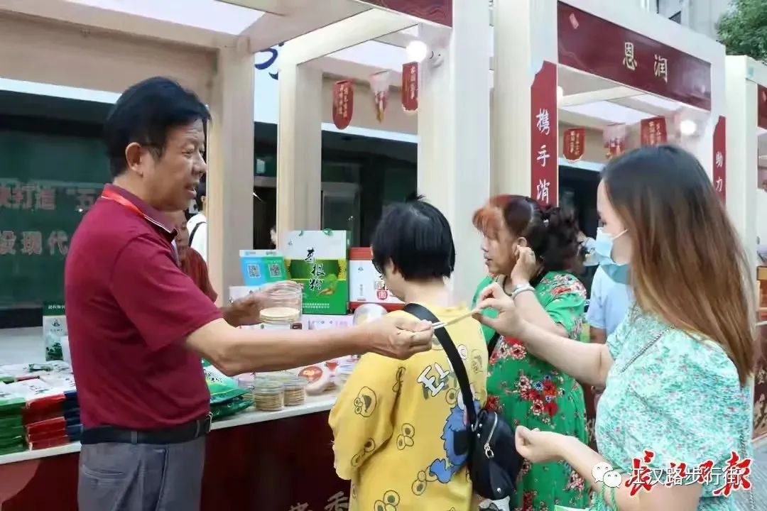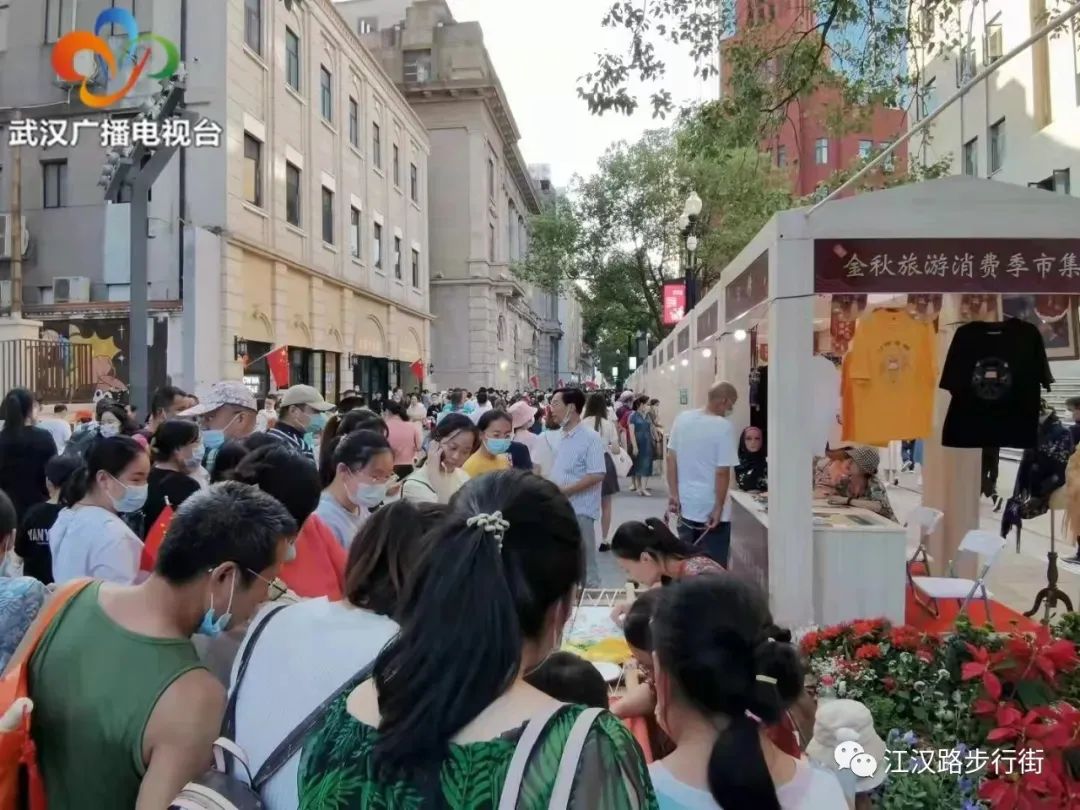 2021年国庆节,江汉路步行街街区红叶黄花秋意浓,国旗飘扬人如织。江汉路步行街国庆节日期间继续推进街区商业繁荣发展;丰富多彩的文商旅活动持续加持;利用街区抖音官方号直播探店吸引线上群体;街区商家积极参与妙招齐出;市民游客踊跃打卡人气汇聚,节日氛围盎然,成为市民欢度国庆的一个重要打卡地。 据统计,10月1日至7日,江汉路接待总客流量200.26万人次,同比增加26.08%,比2019年增加44.86%,创历史新高。从客群结构看江汉路对年轻群体具有较强吸引力,8-30岁的年轻人占比58.2%;从游客来源看,本市占比57.58%,省内其他地市占比13.28%,外省占比29.12%。10月1日当天江汉路迎来历年国庆假期最大单日客流36.6万人次。 节前市园林绿化部门联合街区用5万多盆鲜花布设了三处鲜花造型置景,打造出花卉景观的花漾街区,引得众多市民前来拍照驻足游玩观赏。 10月1日至3日江汉路大汉口舞台举办了江汉金秋文艺汇演、金秋消费季非遗文化产品展、对口扶贫地区宣恩县土特产品展等系列活动,为江汉路增添了新的吸引力。四季美、蔡林记、老万成酸梅汤、汪玉霞等来汉必吃的汉味小吃在市集上聚集不少人气;汉绣、宣恩竹编、金丝楠木手工木雕、土家绣花鞋垫……来自武汉及恩施的一批非遗项目也在市集设置展位,引得游客频频驻足围观。国庆假期江汉路人气爆棚,市民消费热情持续高涨,街区总销售同比增加近30%。大洋百货、中心百货顾客大幅增长,黄金饰品、数码手机等商品增幅明显,餐饮场所每天爆满,最多的一家一天翻台达到8次;三联书店客流量达到平时1.5倍左右,一楼小米店销售额是平时工作日10倍;武汉世界馆国庆期间客流量是平常的3到4倍,俄罗斯冰淇淋、俄罗斯紫皮糖等多款商品走俏。街区电影院也场场爆满。江汉路在本次长假吸引了更多年轻人,网红餐饮及密室、剧本杀等沉浸体验式消费业态发展势头较猛。绿树竞技酒店开业不到半个月,国庆期间的营业额为全国50余家店之首。