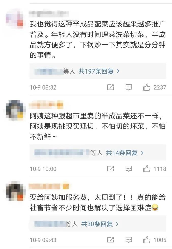 (1)“现在年轻人不喜欢做饭、买菜”(90后的群体特征); (2)“现在很多年轻人工作忙”(需求点:节约时间和精力); (3)“觉得做饭要洗切煮很麻烦”(需求点:吃的更便捷); (4)“现在年轻人赚钱不容易,外卖也贵”(需求点:吃的更便宜、降低生活成本); (5)“外卖吃多了,往往对身体不好”(需求点:吃的更健康)。此外,虽然李阿姨没说,但网友还表达了另外一点:“在家有父母宠,菜市有阿姨惯”。也就是说,这对离开父母生活的年轻人来说,阿姨“保姆级”、“亲妈式”的服务,有种像家一样的情感。