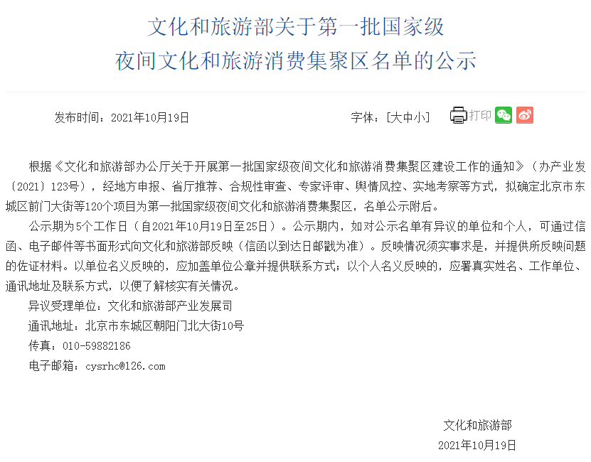 《文化和旅游部关于第一批国家级夜间文化和旅游消费集聚区名单的公示》