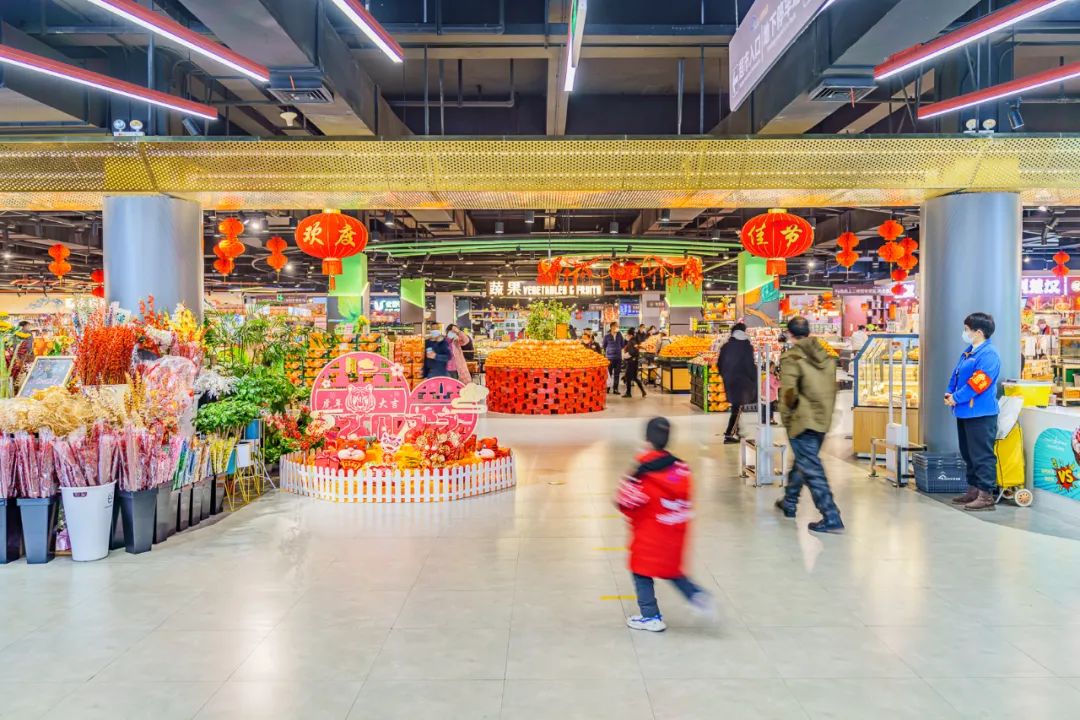 风雪并没有影响武汉人的生活,各大商超秩序井然,物丰价美,节日气氛很是浓郁。