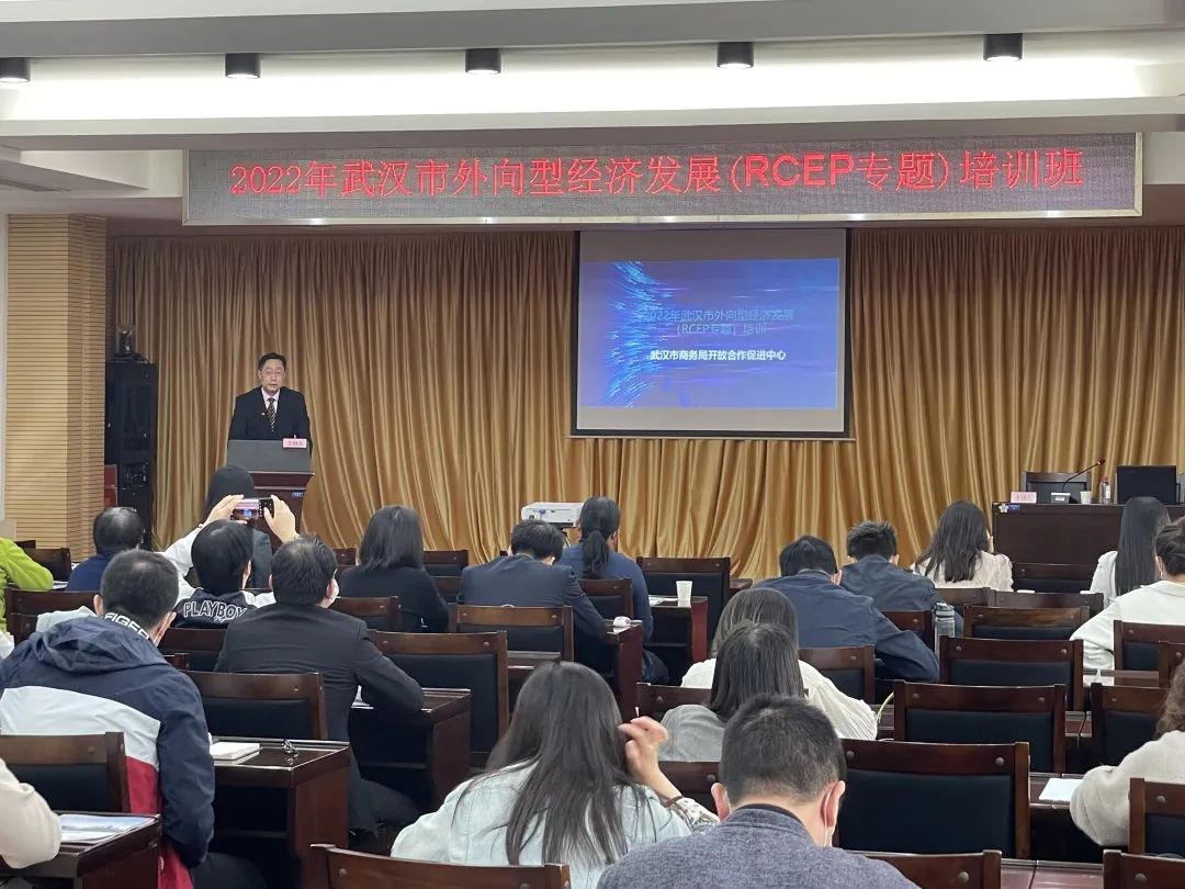 本次专题培训是3月30日武汉市商务局主办的面向全市商务系统干部管理队伍RCEP培训的延伸,由武汉市开放合作促进中心承办,采用线上与线下相结合的方式举办。