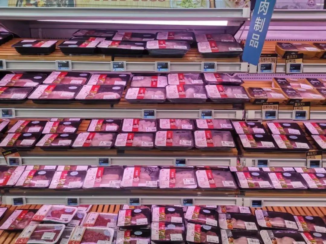 盒马货架上充足的猪肉