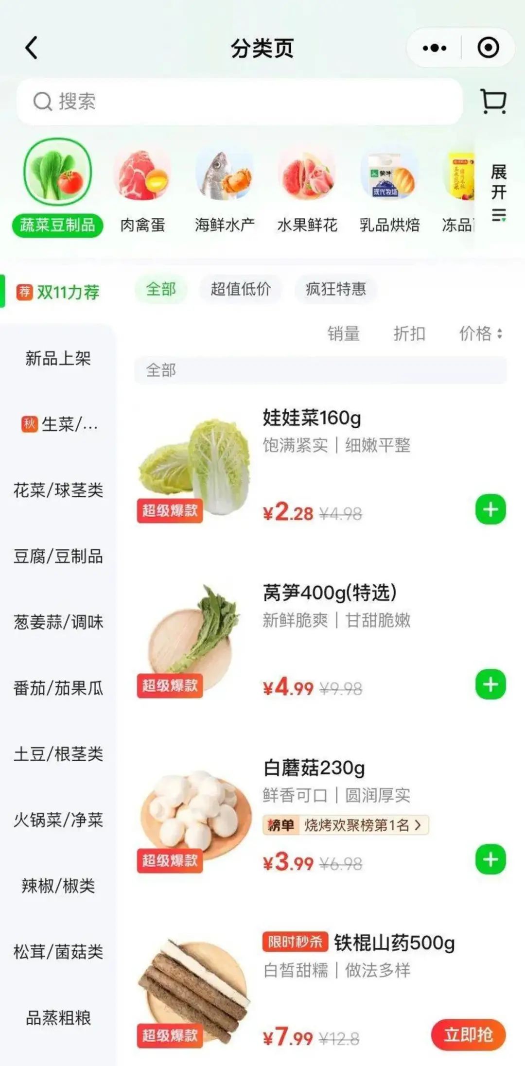 美团买菜小程序上丰富的时令菜