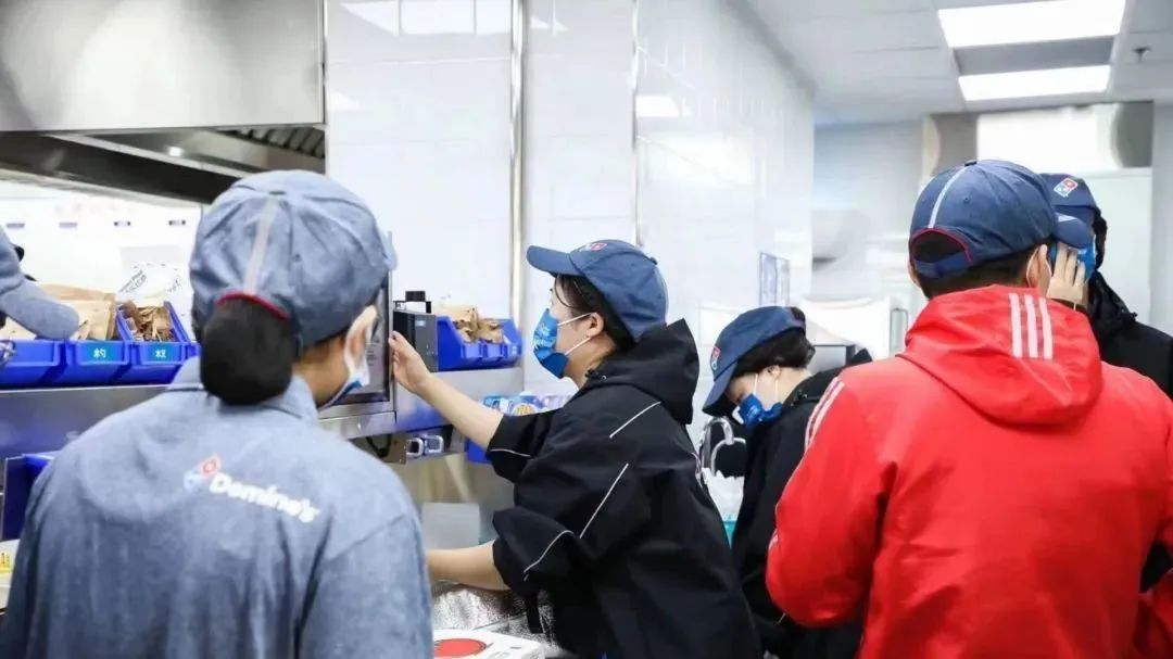 达美乐比萨华中首店的厨房里,烤炉不间断作业。