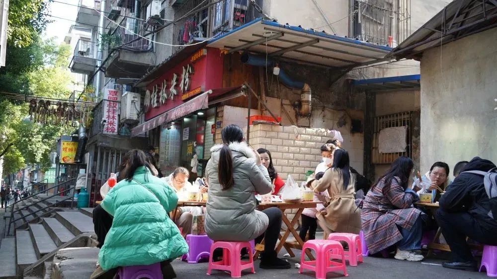 1月4日下午,粮道街一家米粉店前仍有大量食客。