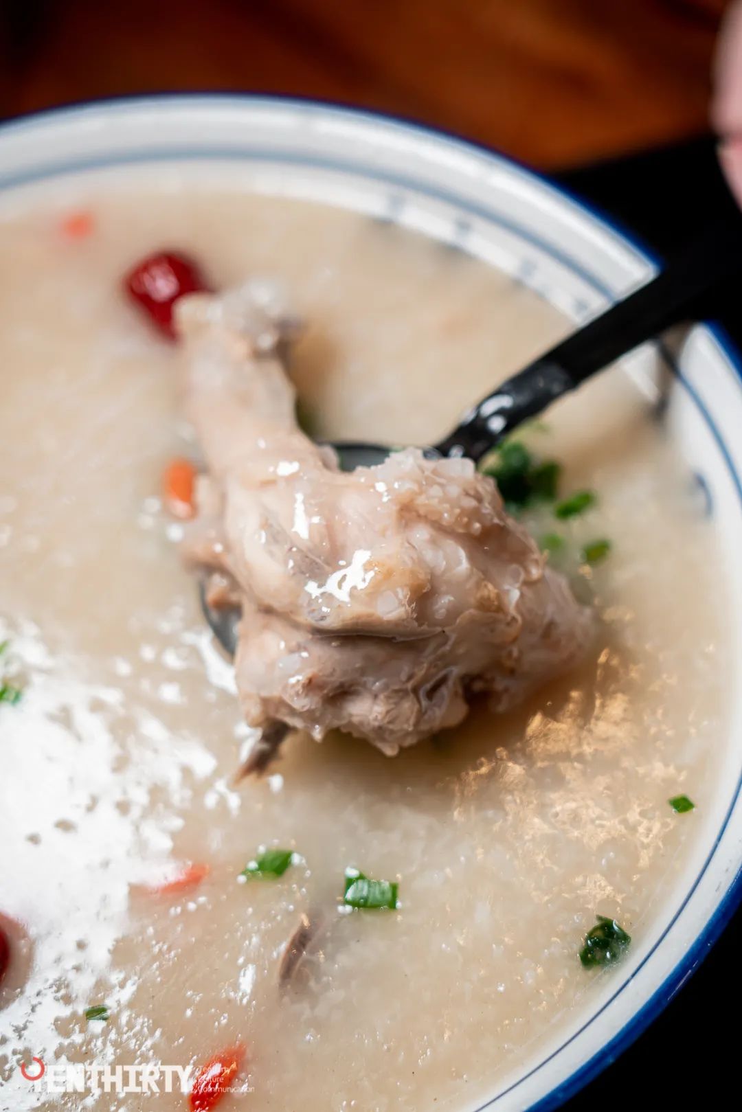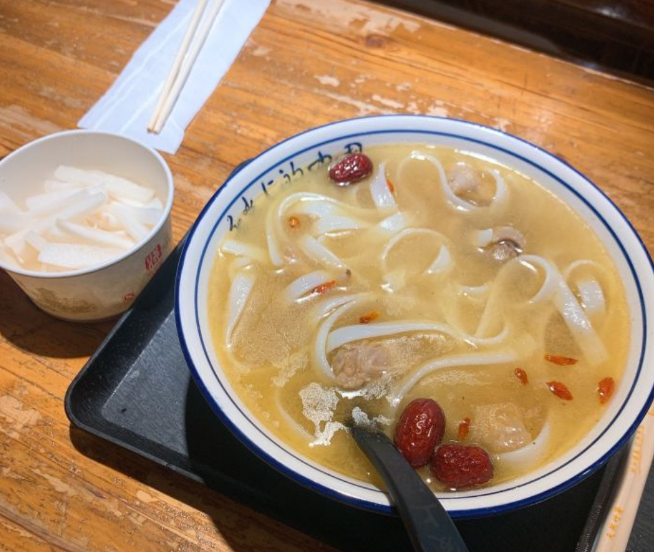 招牌是「镇店一品老鸡汤」,精选一年以上农家自养走地母鸡,自然生长、骨头够硬,六小时能够把骨内的胶原都熬制出来。