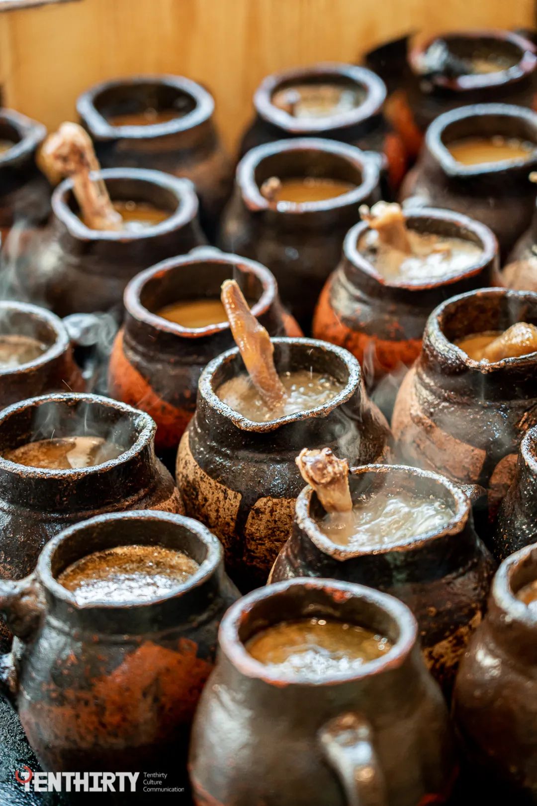 店门口整齐划一地排着褐色瓦罐子,氤氲的白色雾气中伸出来诱人的骨头棒子,仿佛在说“来吃我来吃我!”,毫不掩饰自己的鲜香。