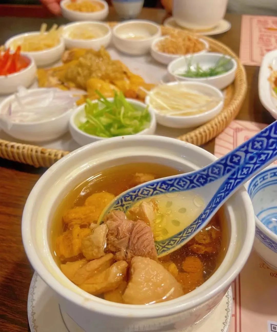 「爱上汤」的老板曾经师从小桃园的煨汤师傅,并且在古法煨汤的技艺上进行了改革创新,其中最有名的就是糯米土鸡汤。