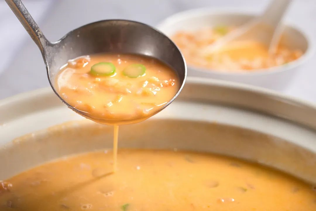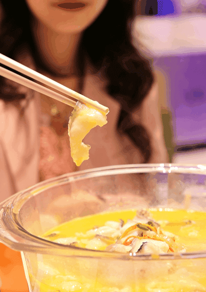 汤底精选黄油老母鸡,再加入虾仁、干贝等食材6小时慢熬,致力于激发所有食材的至本原味,丰富的胶质尽数融化在汤底之中,满满一锅胶原蛋白,汤汁滴滴浓醇,喝一口都黏嘴。