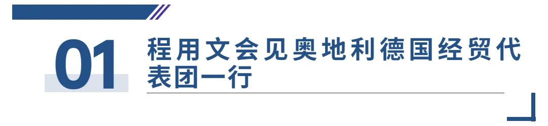 7月8日,武汉市委副书记、市长程用文会见奥地利德国经贸代表团一行。程用文对经贸代表团一行来汉考察交流表示欢迎。他希望双方在绿色经济、人工智能、新能源汽车、数字经济等领域扩大交流合作,推动人员互访互信,实现互利共赢。武汉将持续打造市场化、法治化、国际化营商环境,全力支持企业在汉安心落户发展。