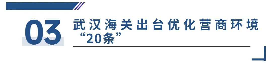 为进一步稳定社会预期、提振外贸发展信心,武汉海关对标海关总署优化营商环境16条措施,因地制宜结合湖北省外向型经济发展重点产业、重点项目、重点商品,以“能落地、可见效”为导向,围绕提升通关效能、降低企业成本、支持重点产业、增强服务能力等4个方面,制定了《武汉海关进一步优化营商环境20条措施》。