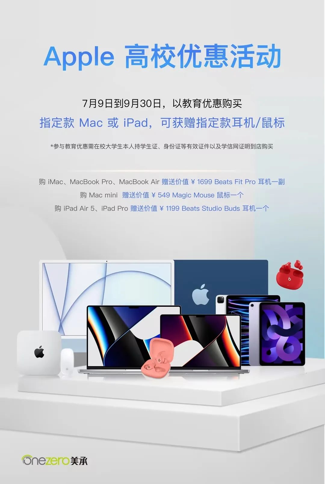 ipad以及Mac高校学生可参加教育优惠,最高直降1600,再送价值1699的beats耳机;
