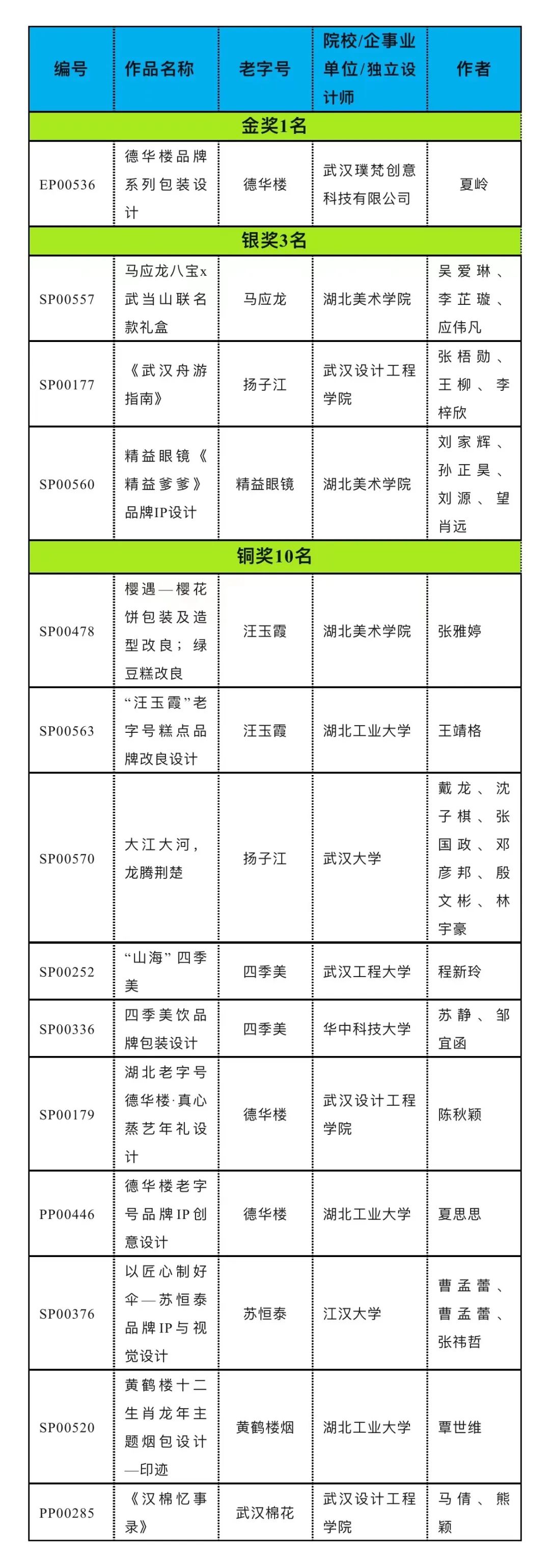 武汉老字号 | 获奖作品名单 241套