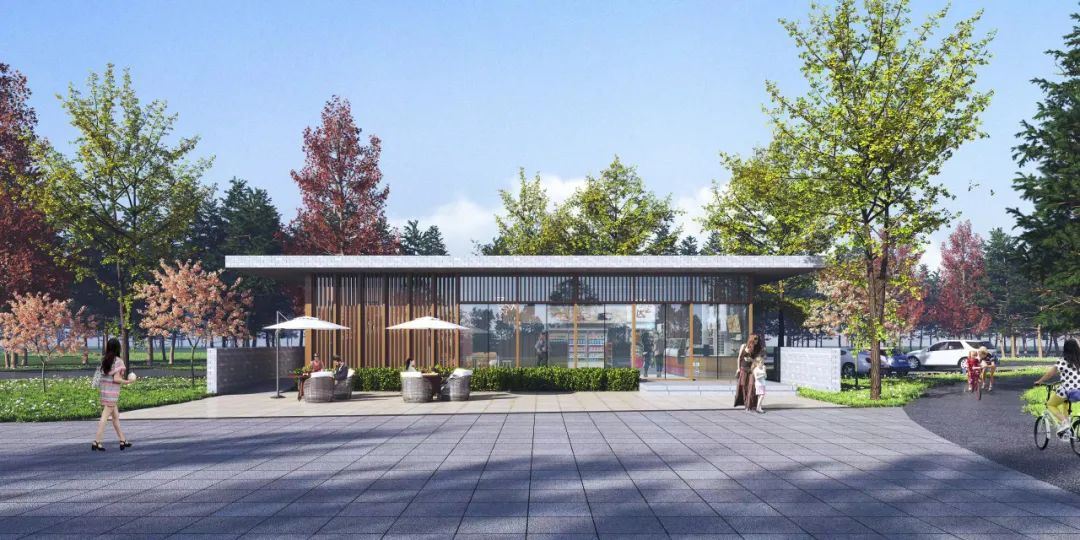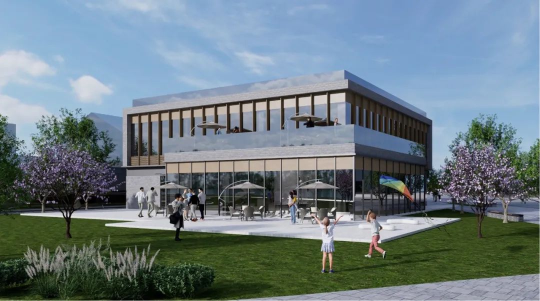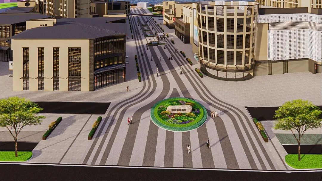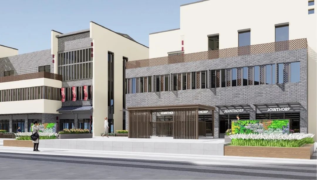 △广场一侧的服务驿站效果图。