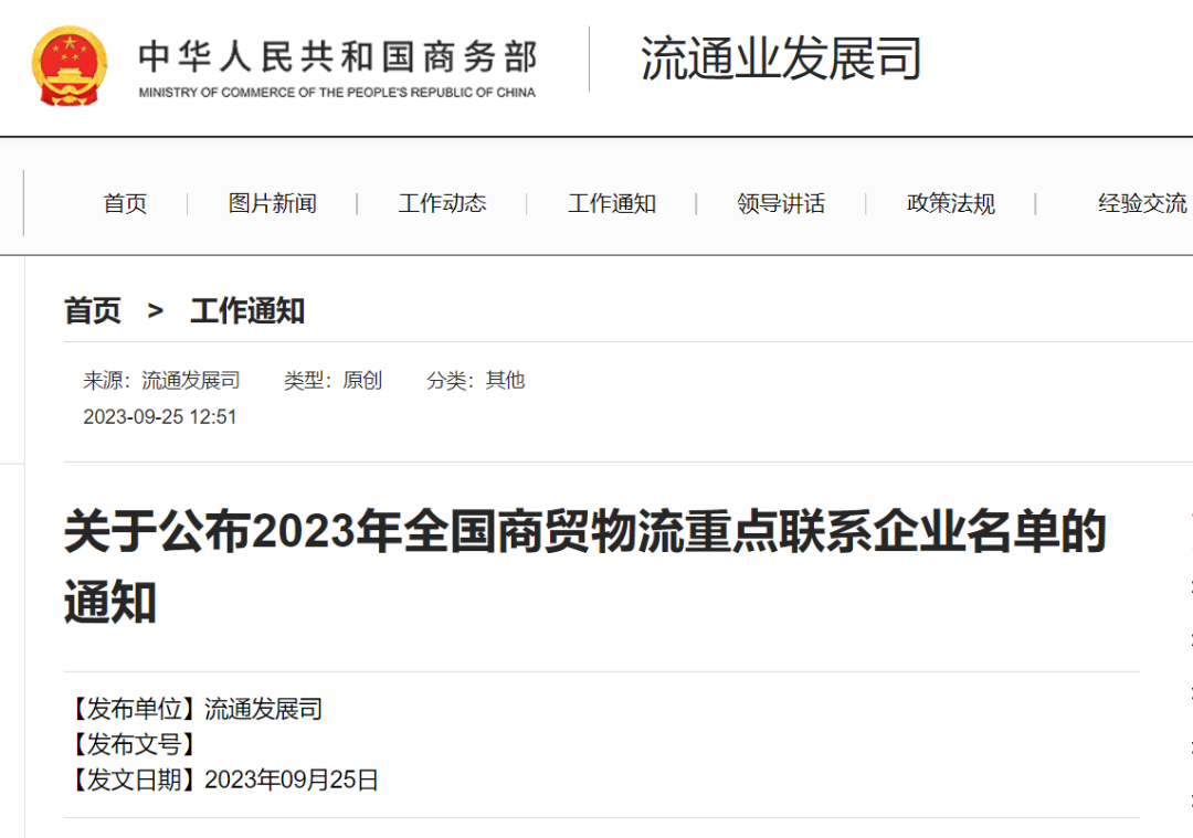 发布日期:2023-09-26 22:15:36 文章来源:武汉商务近日,为贯彻落实党中央、国务院关于畅通国民经济循环和建设现代流通体系的决策部署,加快培育商贸物流骨干企业,商务部根据《商贸物流高质量发展专项行动计划(2021-2025年)》(商流通函〔2021〕397号)和《商务部办公厅关于建立商贸物流企业重点联系制度的通知》(商办流通函〔2022〕242号),经企业申报、地方推荐、专家审核和社会公示,确定了2023年全国商贸物流重点联系企业。其中,我市八家企业入选。
