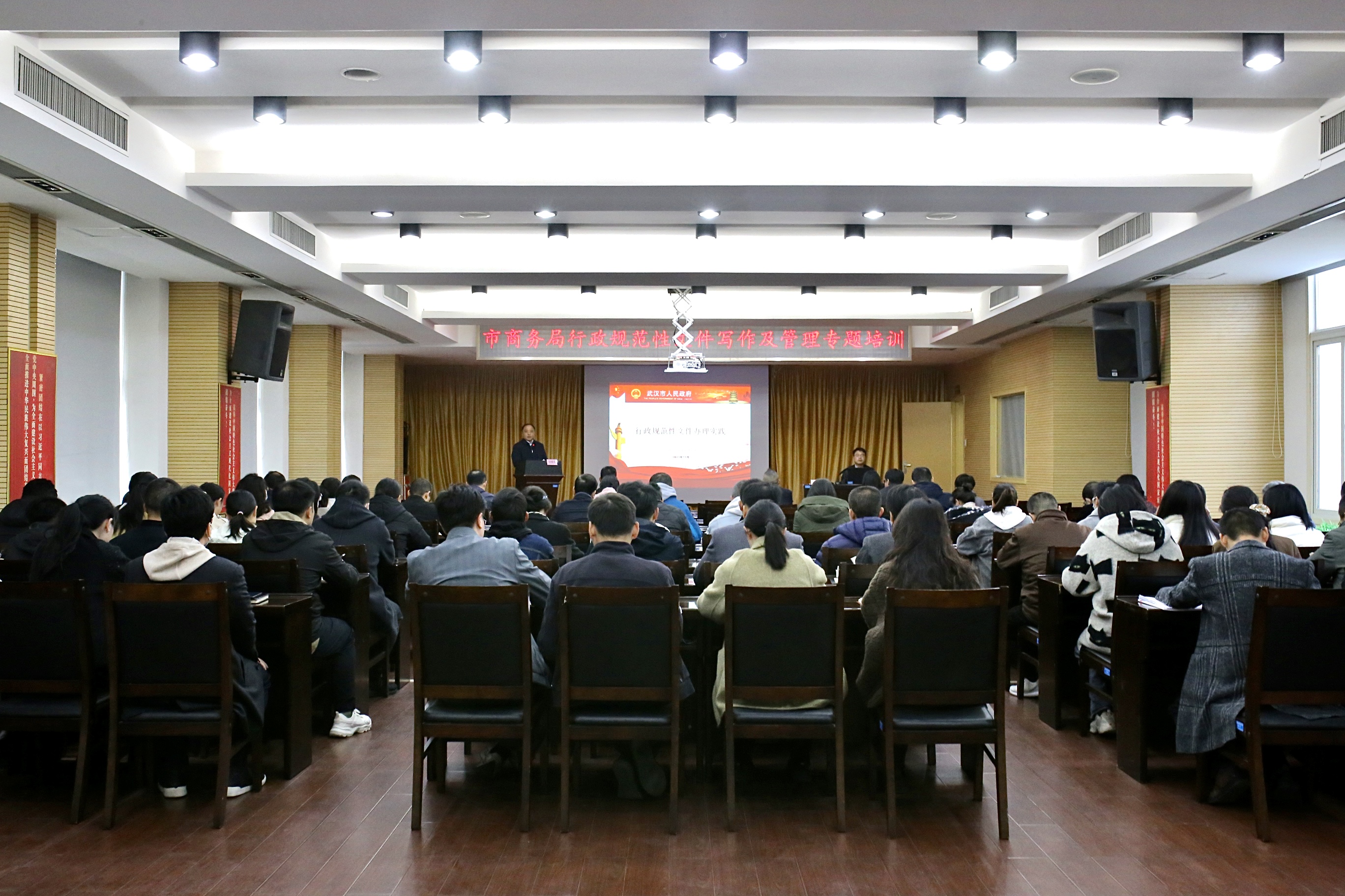 为进一步提高行政规范性文件起草水平,规范做好文件管理工作,推进依法行政,11月17日,市商务局举办了行政规范性文件写作、管理专题培训会。局领导、局机关各处室和局属单位干部职工100余人参加。