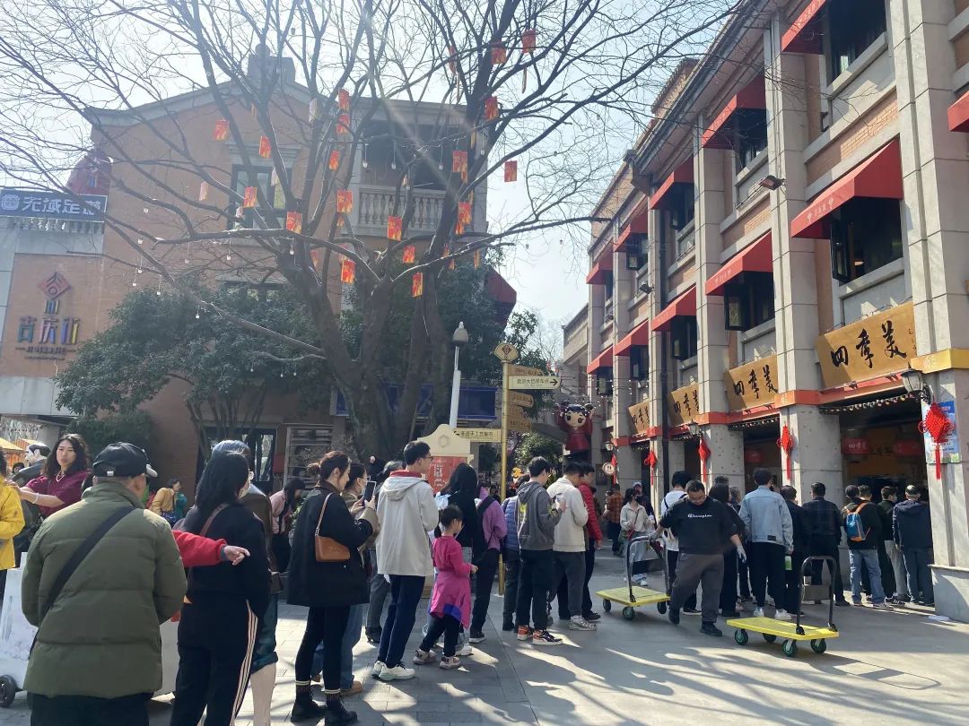 大年三十开始,武汉艳阳高照。吉庆街、户部巷、粮道街、花园道、武汉天地、江汉路步行街以及水塔美食街、万松园美食街几乎每天人潮涌动,街区餐饮店从上午到晚上都要排队消费,人流量和消费额均超过了2019年同期水平。