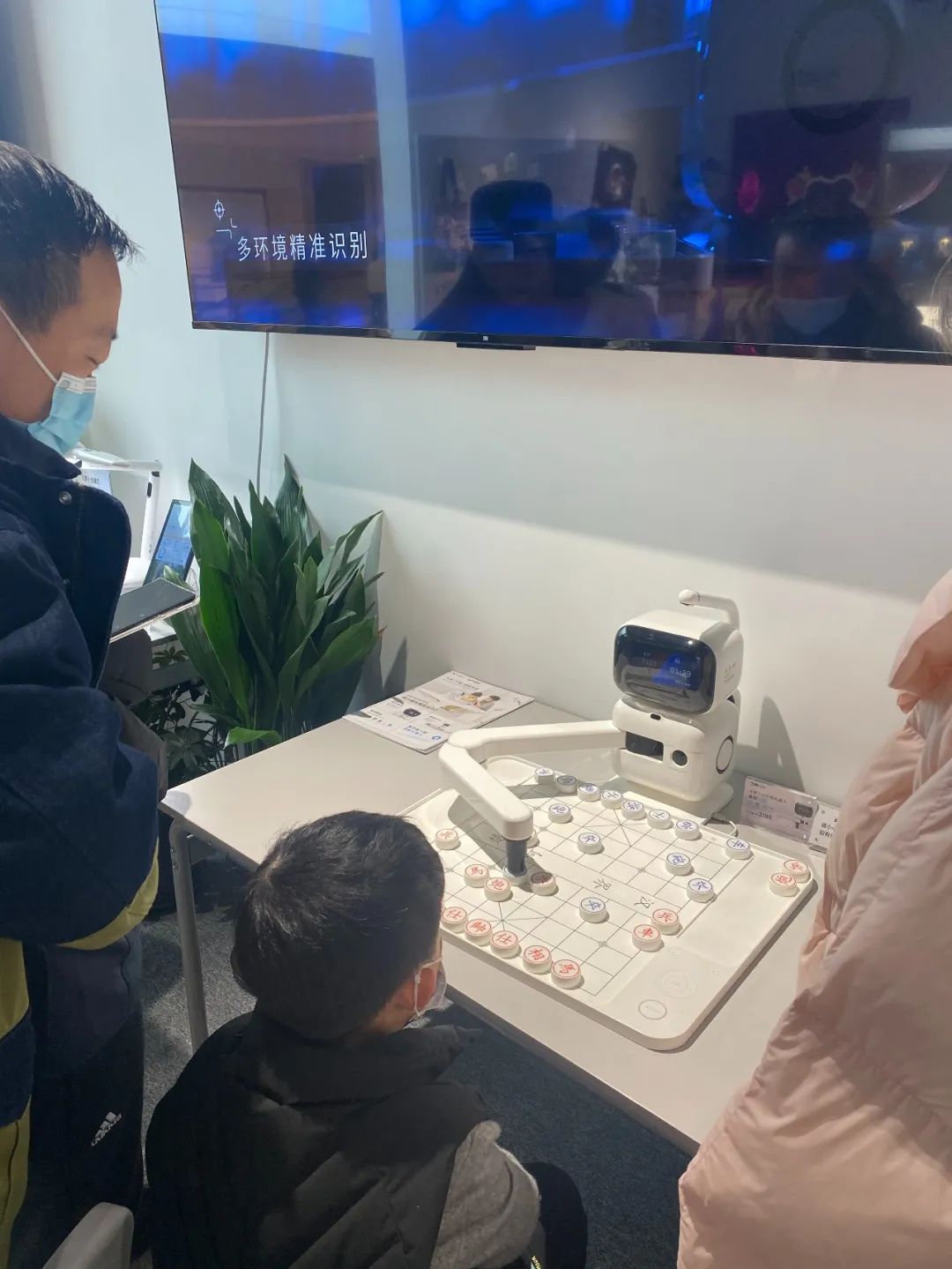 大年初一,台北路武汉万象城里,孩子和AI机器人对弈,兴致勃勃