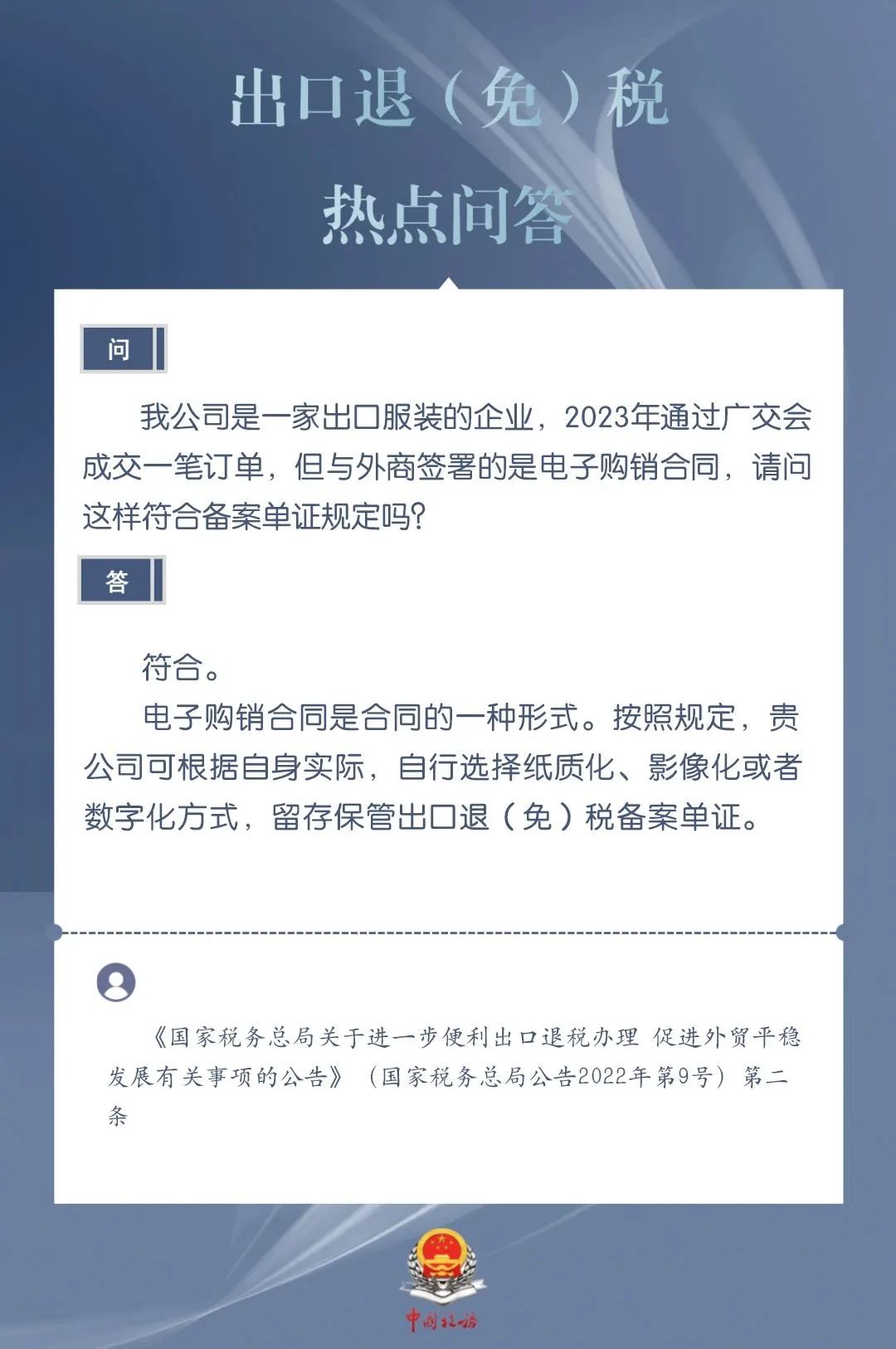 出口企业与外商签署的是电子购销合同,请问这样符合备案单证的规定吗?