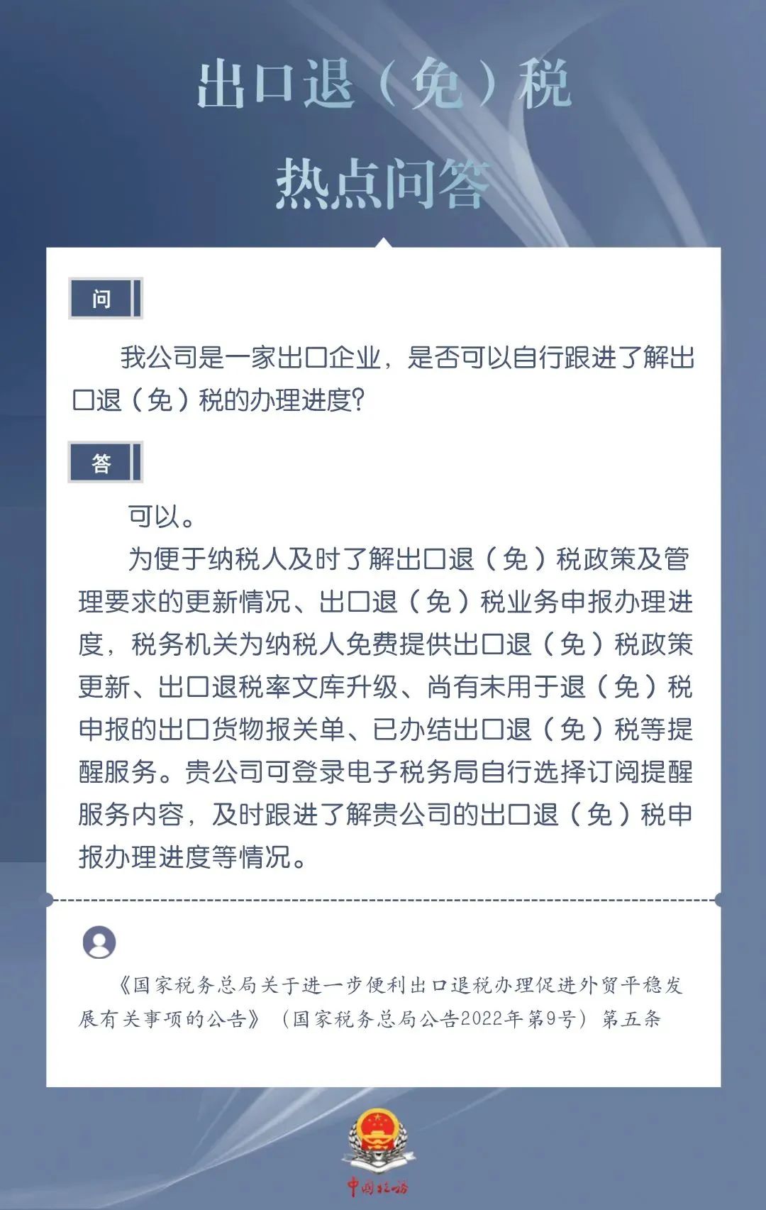 出口企业是否可以自行跟进了解出口退(免)税的办理进度?