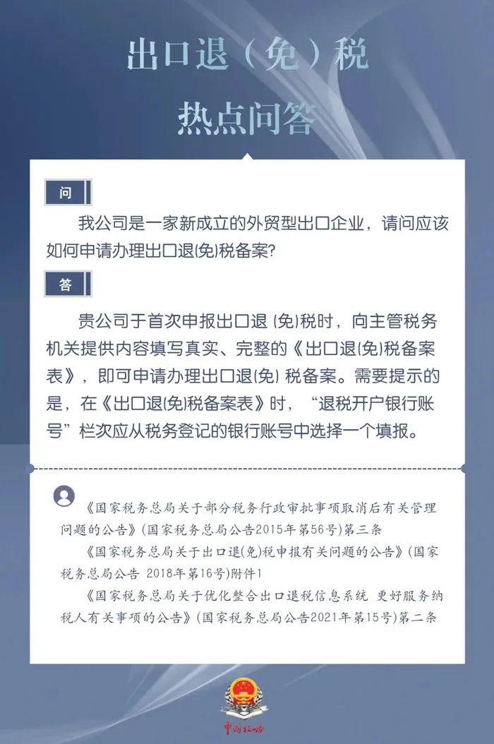 新成立的外贸型出口企业如何申请办理出口退(免)税备案?