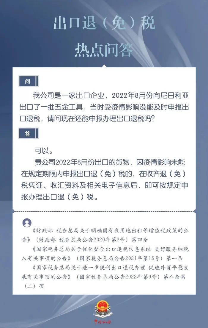 出口企业受疫情影响没能及时申报的出口退税现在还能申报办理吗?