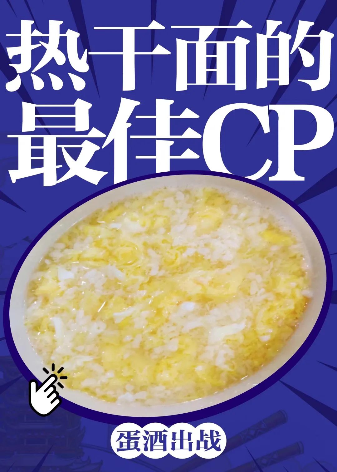热干面的CP是蛋酒,适合不习惯的你在芝麻酱马上要糊嗓子眼的时候来一口,甜滋滋还解腻。