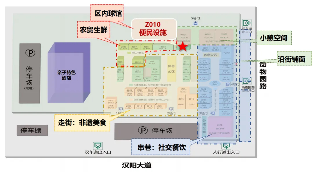 在走街区域,将引入蔡林记、四季美、汪玉霞等武汉本土老字号品牌美食,并对其门店门脸进行创新设计、视觉包装,使线上线下结合,增强互动性、趣味性,提升消费者体验感。串巷区域将引入前进五路炸鸡、小民大排档、靓靓蒸虾等汉阳区域首店、网红美食餐饮品牌,点燃五里墩街区的烟火气氛;小憩空间区域将引入各地特色小吃,营造“市井街里、走街串巷、聚拢来是烟火、摊开来是生活”的氛围感。