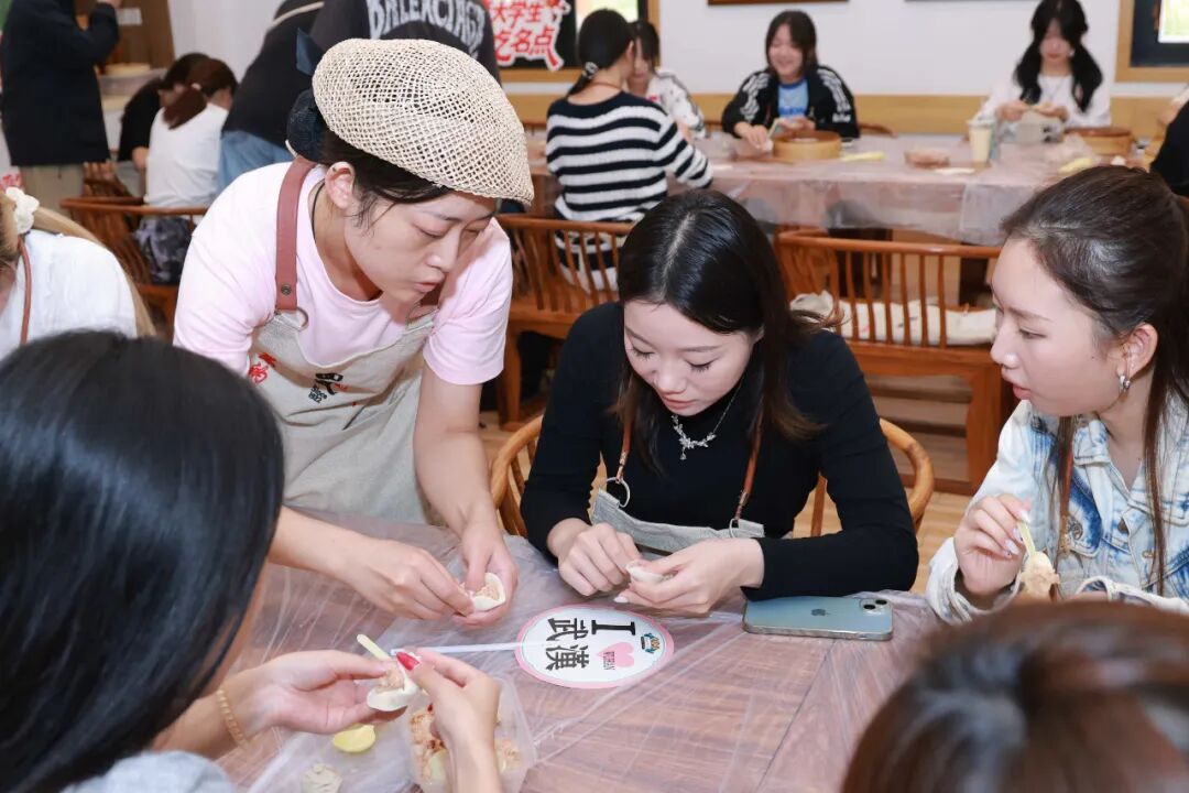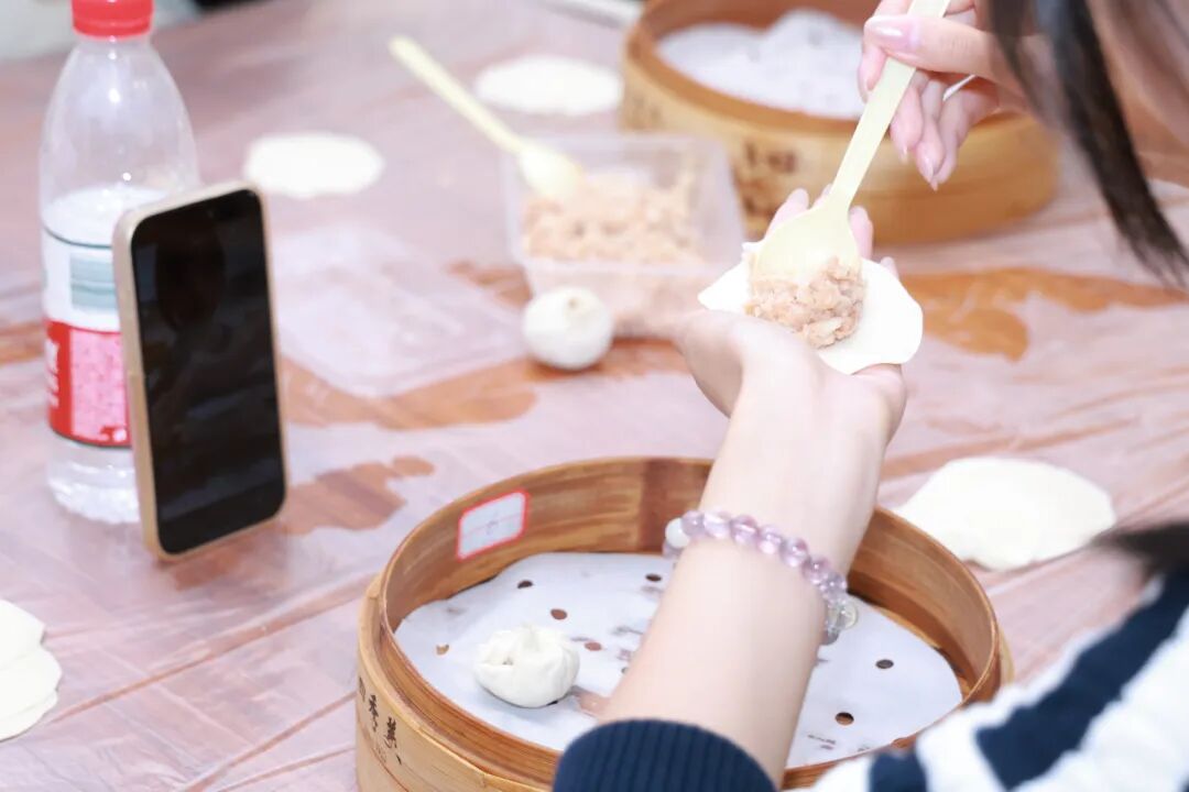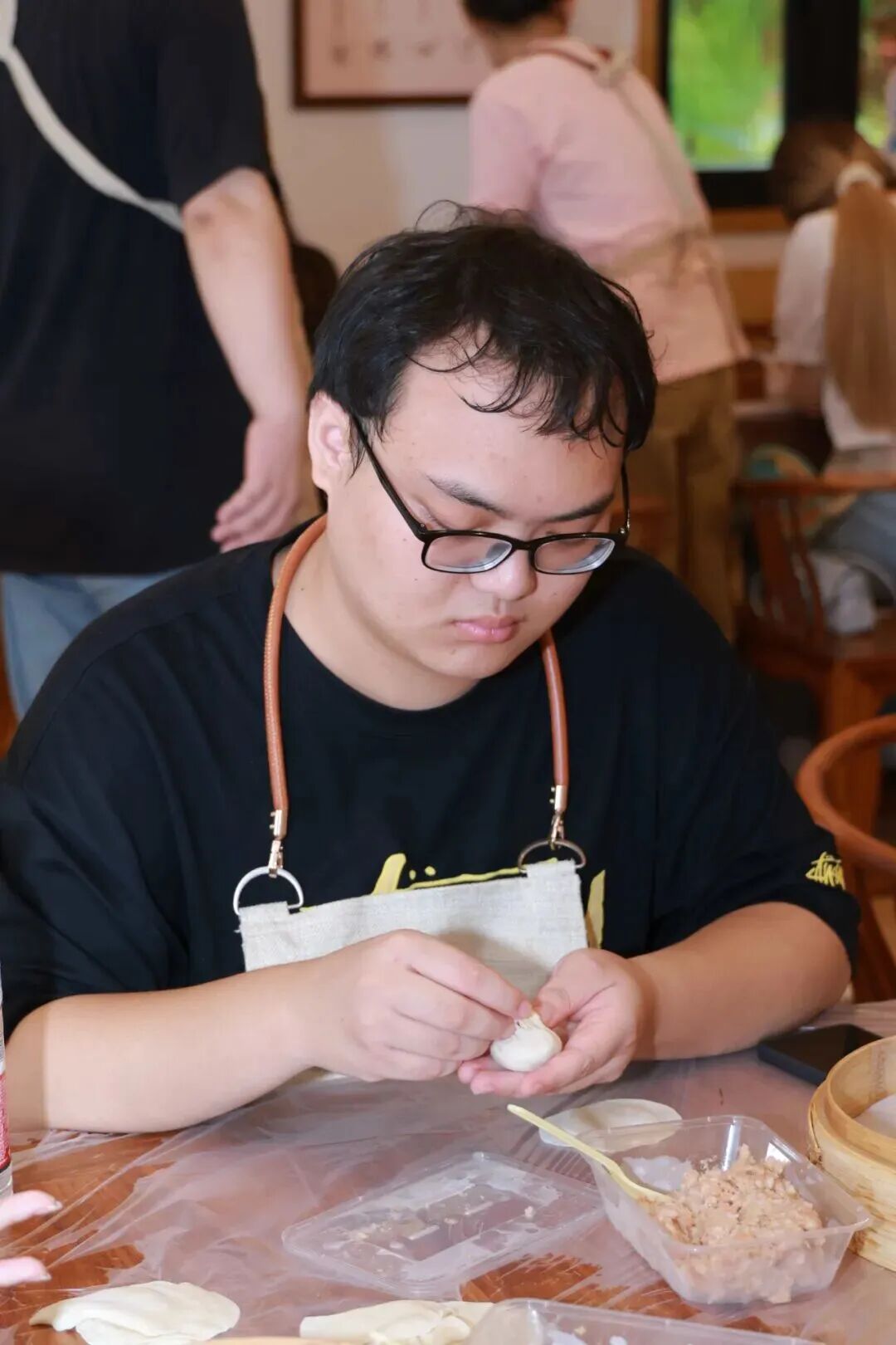 "原来包汤包这么讲究!"一位同学在亲手尝试后感慨道。更让同学们兴奋的是,他们品尝到了自己亲手制作的汤包,这种体验让美食的记忆更加深刻。