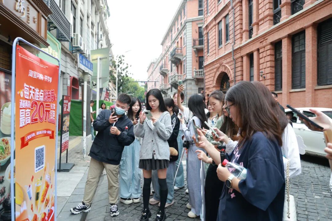 "没想到古老的街区可以变得这么时尚!"同学们边走边拍,记录下这个商文旅结合的新地标。