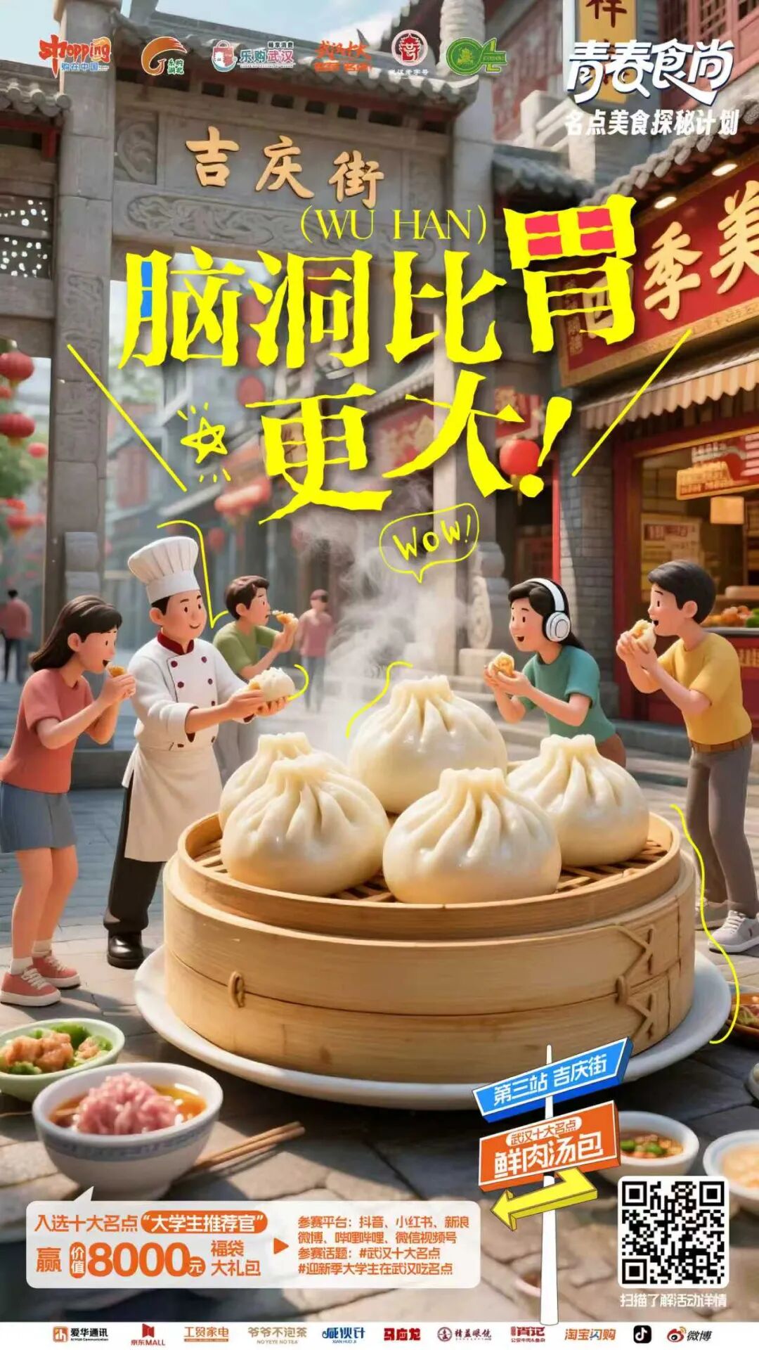 发布日期:2025-09-29 08:42:29 文章来源:武汉商务“青春食尚·名点美食探秘计划”高校研学活动正式启动,带领大学生走进武汉十大名点,感受美食背后的城市文化。“青春食尚·名点美食探秘计划”旨在通过号召大学生围绕武汉“十大名点”开展图文、视频创作,用青春视角挖掘武汉“十大名点”的潮流特色。(十大名点“大学生推荐官”评选和高校创意赛详情见大学迎新季,紧急招募!“食神”速来领8000元大礼包)