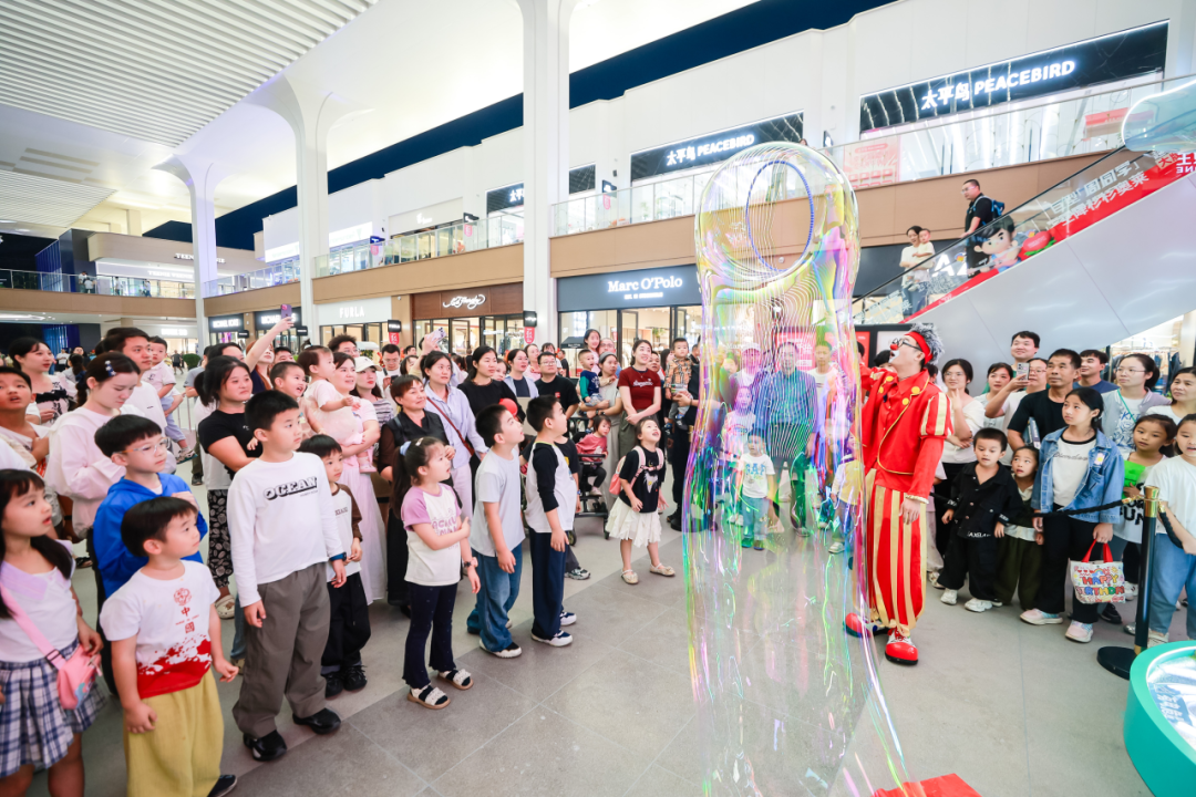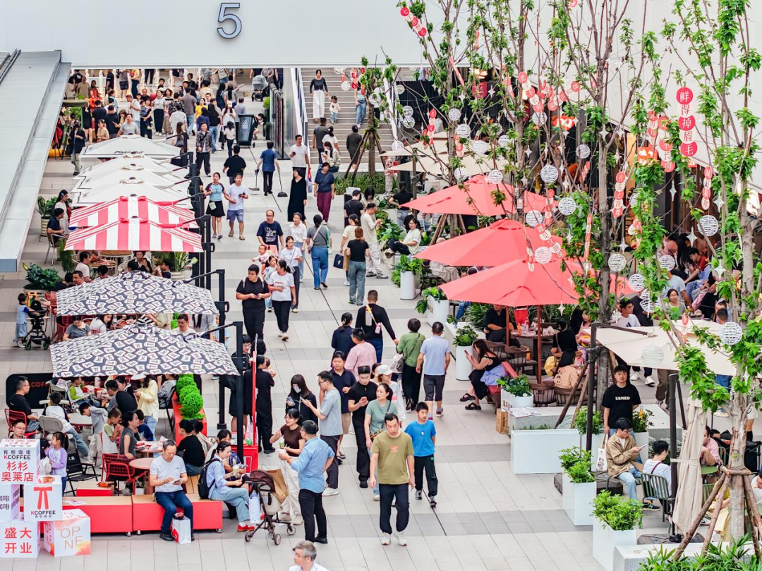 中庭广场上,“湖光杉色”荷叶装置自带文艺滤镜,不少市民刚进门就掏出手机打卡;户外街区的雾森系统定时开启,丝丝凉意裹着清新水汽,夏天逛也不觉得闷热。室内馆逛潮流大牌,户外街赏湖景吹微风,“滨湖度假+大牌小价”的组合,逛着逛着就忘了自己是来买东西的,反倒像来了场短途微旅行。